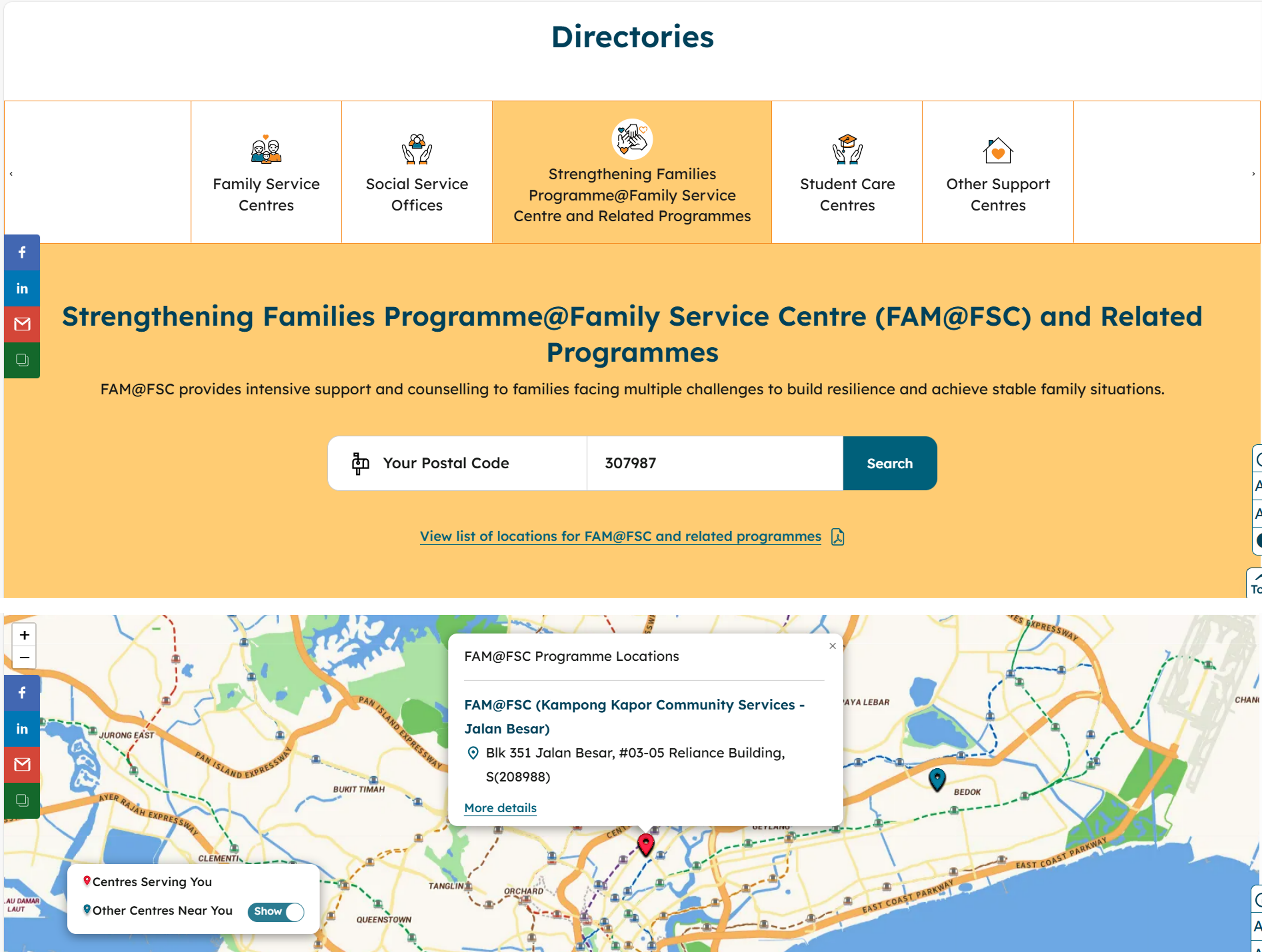 The Directory of Family Services (DFS) is a database maintained by the Ministry of Social and Family Development (MSF) that contains information about social services and programmes available in Singapore. It serves as a comprehensive resource for social service professionals and the public to locate and access various family-related support services.